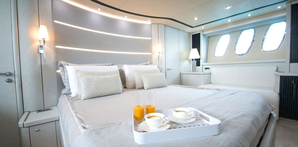 Her four cabins are extremely well proportioned and appointed, leaving you feeling comfortable and in complete luxury. Her master suite combines dark wood with light fixtures and fittings, creating a warm, homely environment. Charter with a group of friends or your family for an unforgettable vacation. Superb styling makes this Sunseeker one of the most beautiful yachts on the water.